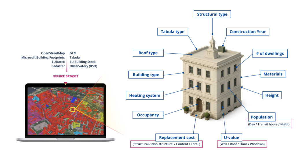 Στην καρδιά του Toolbox βρίσκεται η Ευρωπαϊκή Βάση Δεδομένων Κτιρίων, μια ενιαία και εναρμονισμένη πλατφόρμα που συγκεντρώνει πληροφορίες από κορυφαίες ευρωπαϊκές και διεθνείς πηγές, όπως OpenStreetMap, Microsoft Building Footprints, EUBucco, GEM, Tabula και το Building Stock Observatory. Η βάση αυτή προσφέρει επίπεδα λεπτομέρειας που μέχρι πρότινος δεν ήταν διαθέσιμα σε τέτοια κλίμακα.